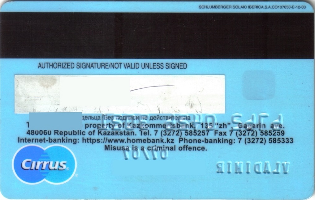 Год выпуска: 2007 МПС: VISA Уровень: Electron Описание: AXALTO SP, S.A. CO115953-E-05-07 ID №: 0000133