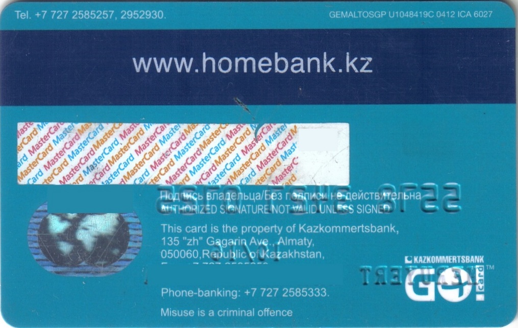 Год выпуска: 2013 МПС: MasterCard Уровень: Standard Описание: GEMALTOSGP U1048419C 0412 ICA 6027 ID №: 0000634