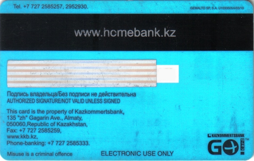 Год выпуска: 2010 МПС: VISA Уровень: Electron Описание: GEMALTO SP, S.A. U1033505A/09/10 ID №: 0000601