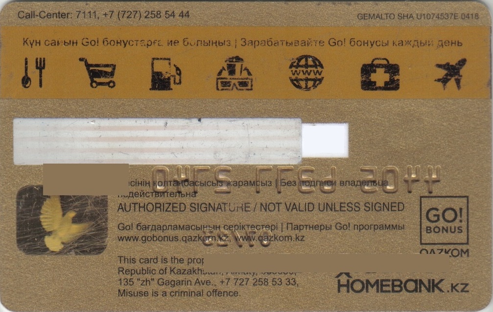Год выпуска: 2018 МПС: MasterCard Уровень: Gold Описание: GEMALTO SGP U1074536F 0318 ICA 6027 ID №: 0000576