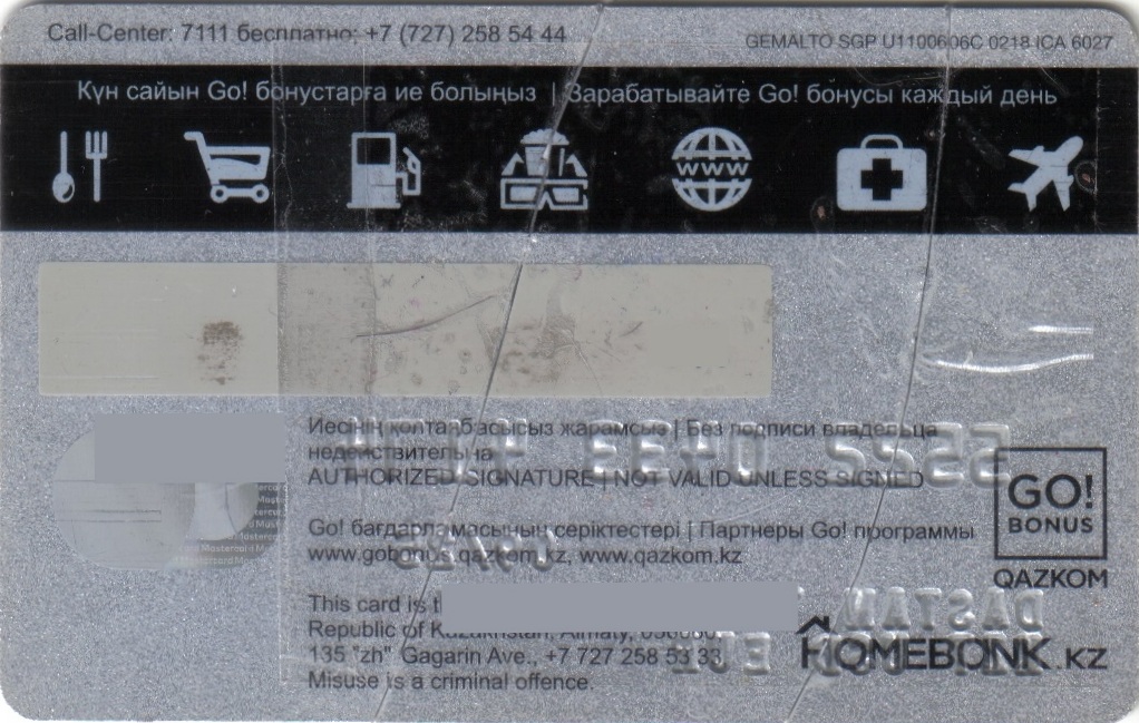Год выпуска: 2013 МПС: MasterCard Уровень: Standard Описание: GEMALTOSGP U1044371C 0113 ICA 6027 ID №: 0000652