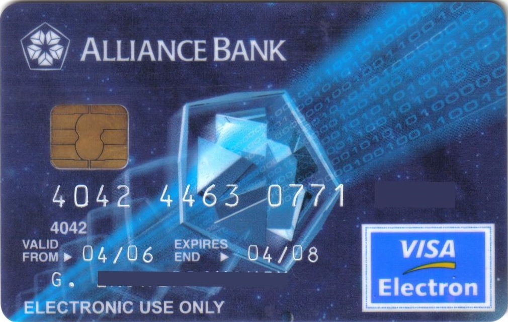 Год выпуска: 2006 МПС: VISA Уровень: Electron Описание: AXALTO SP, S.A. CO113163-E-05-06 ID №: 0000539