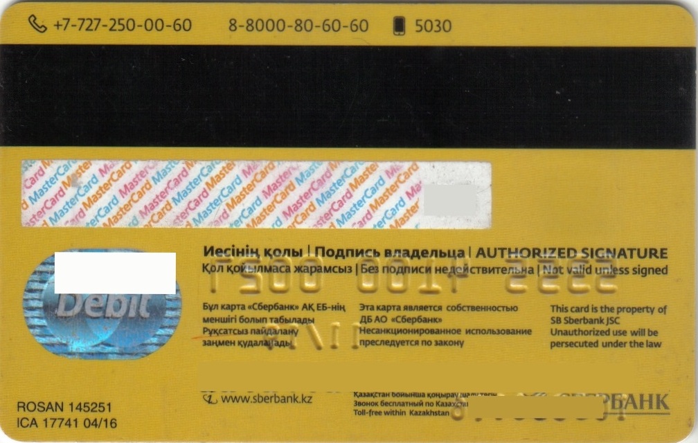 Год выпуска: 2016 МПС: MasterCard Уровень: World Описание: ROSAN 145251 ICA 17741 04/16 ID №: 0000706